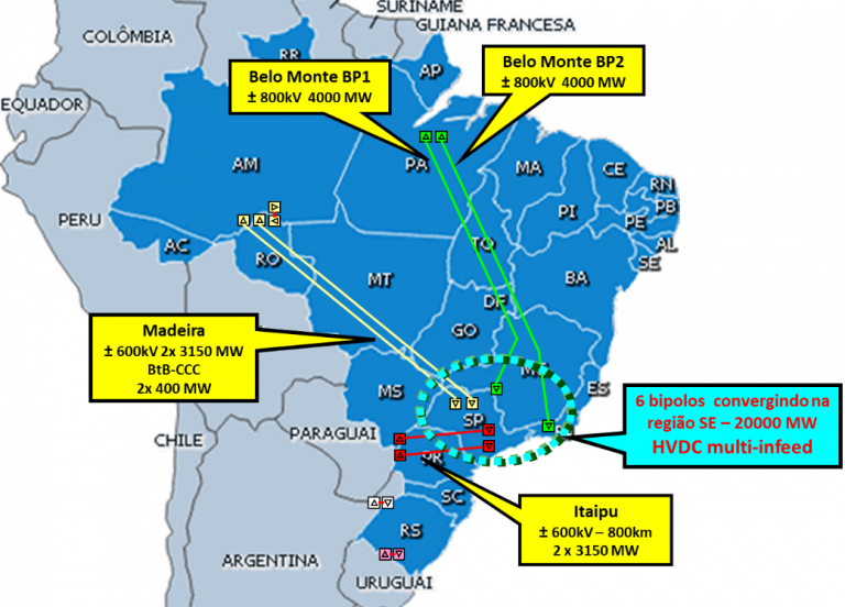 A principal motivação para o desenvolvimento do programa AnaHVDC é o aumento do número de elos de corrente contínua no Sistema Interligado Nacional (SIN). A transmissão em corrente contínua já representa uma parcela importante da rede de transmissão do SIN. A presença de seis bipolos HVDC, convergindo para a região Sudeste do Brasil, configura o esquema conhecido como “múltiplas alimentações em corrente contínua” (DC multi-infeed), que demanda uma avaliação minuciosa e precisa do desempenho dinâmico do SIN devido à complexidade de operação que o sistema DC adiciona. O estudo da ocorrência de falhas de comutação simultâneas, causadas por contingências na rede de transmissão, torna-se essencial, por exemplo, para antecipar medidas mitigadoras que evitem consequências negativas para o desempenho do sistema.